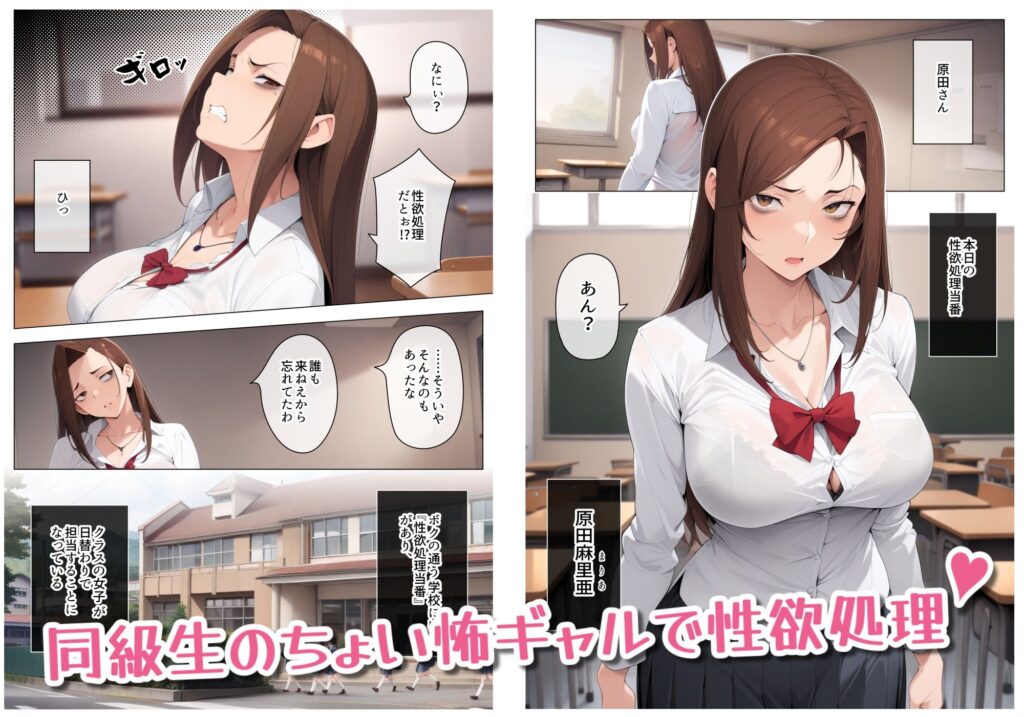 目つき悪いギャルで性欲処理に登場してくるヒロインは、どちらかというと眉毛が細くつり上がっているからそう見えるだけで、目つきは普通で可愛らしいヒロインだと個人的には感じました。