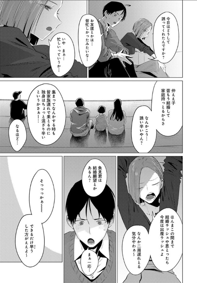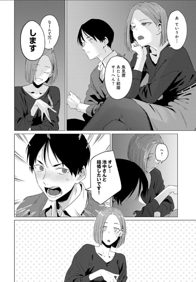 今日は憧れの女上司・池中さんと水族館デート!!浮かれながらも「なぜオレなんかを?」と不思議に思っていると、友人はみんな家庭を持っていて誘いづらいから──と理由を明かしてくれた。結婚に焦る様子の池中さんが、冗談めかして一言、「魚見君、あたしと結婚せーへん?」……なんて言うものだから、「オレ…池中さんと結婚したいです!」と思わず告白してしまい!?告白を受けた池中さんは、なんとホテルにオレを誘って……「欲求不満の行き遅れアラサーをその気にさせたんやから…今更冗談でしたじゃ済まへんからね?」臨場感MAXな濃密エロ職人・九十九弐級先生が描く、姉御肌の女上司とデート後SEX♪