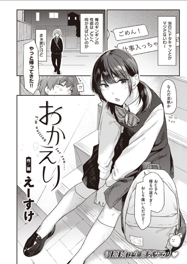 (こりゃもう……中出し確定だな♪)セフレにドタキャンされた夜……アパートに帰ると姪の志帆(しほ)が不機嫌顔で待っていた。もうカレシもいるらしく、兄貴に似た真面目そうな奴だった。そして志帆がうちに来るときは、そのカレシと不完全燃焼だった時で……。そんな夜は容赦なく中出しし放題の合図♪