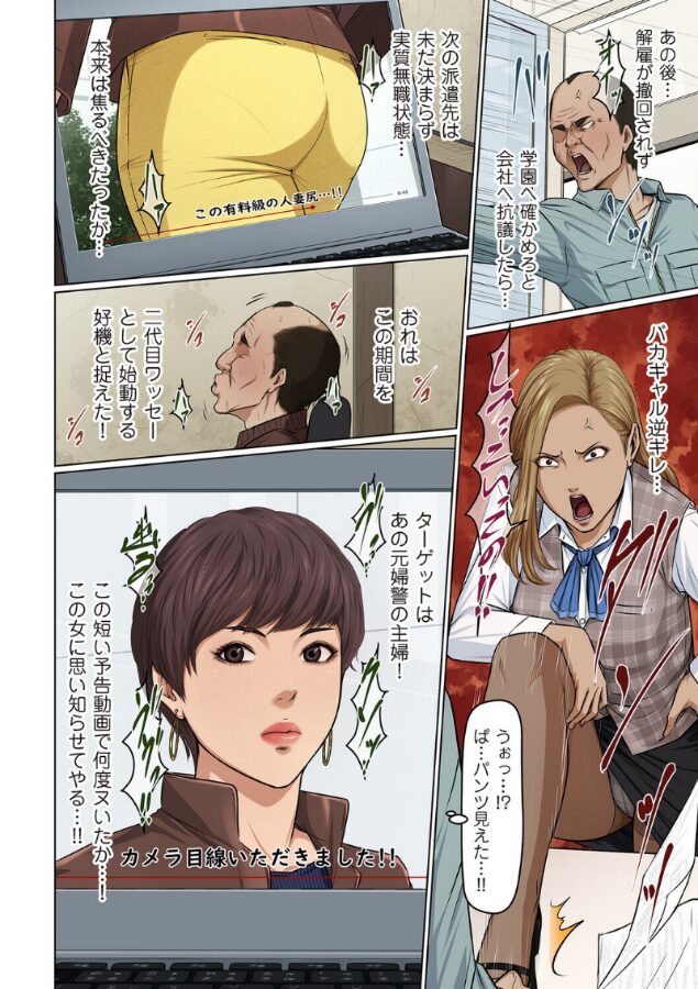 瀬羽は、消えた同人AVの制作者に成り代わり自分が二代目ワッセーとなることを決意した。そして、その記念すべき自作AV第一作のターゲットとしてロリコン扱いされて恨んでいた元婦警を選んだ。繰り返し尾行してその人妻の行動パターンをつかみ、隙をついて後ろから接近。刃物で脅しつつ、嘘をついて軽バンに連れ込む。そして、これまでの怒りのすべてをその獲物の体にぶつけたのだ……。
