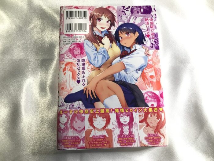 背表紙は『快楽駆け巡る絶頂シーン♥』『臨場感あふれる淫乱セックス♥』『えーすけ作品最高!発情ヒロイン大集合♥』などと過激な文言が並んでいる。