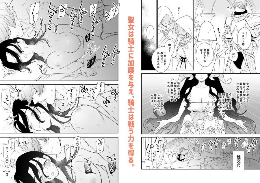 契りとは性交であり、魔物を倒した騎士の穢れは聖女の体で清められる。