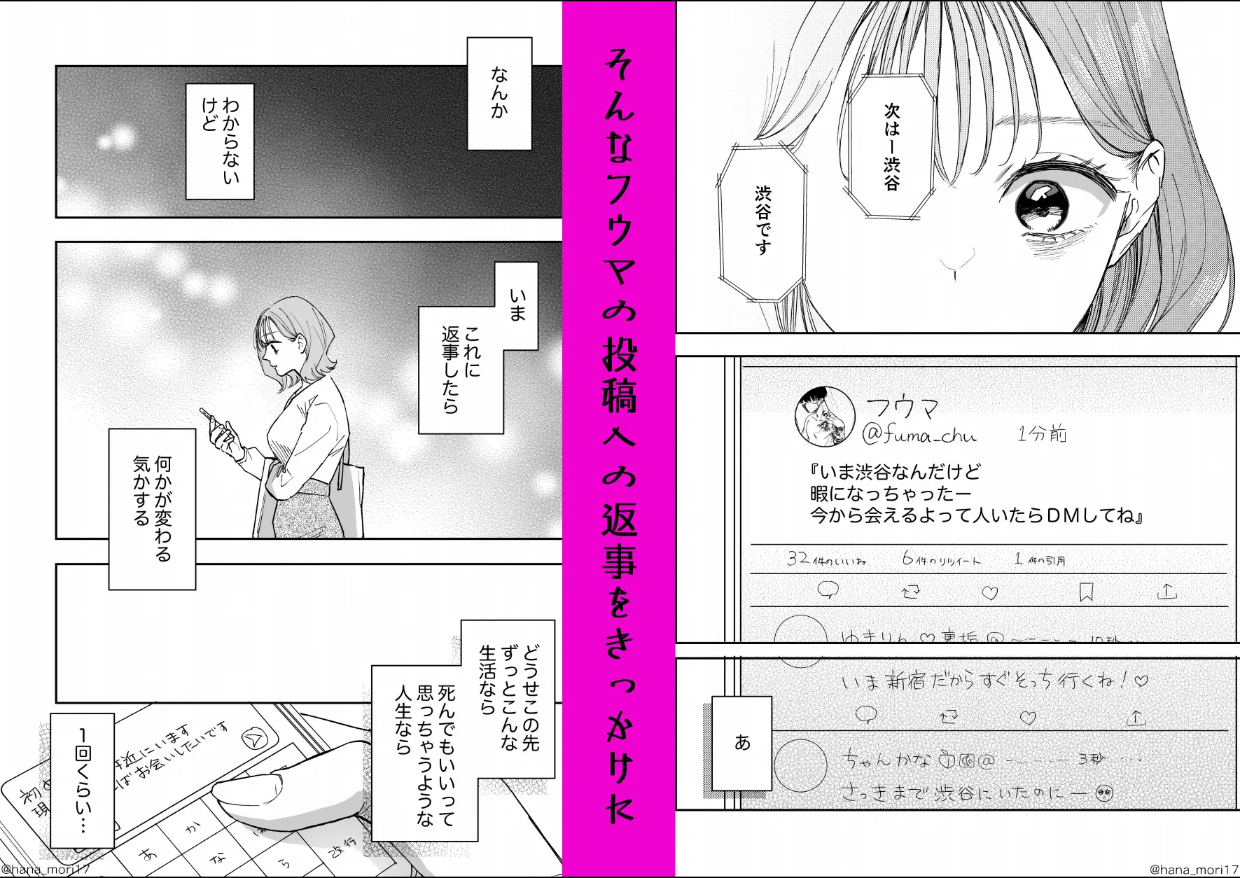 仕事に疲れた主人公は、SNSで人気の裏アカ男子フウマの投稿に惹かれ、会うことになる。